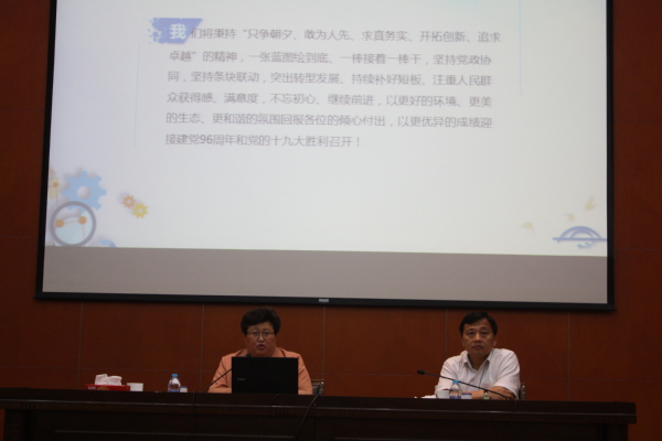 6月30日下午,中共上海市宝山区区委书记、上海社会保障研究中心主任、太阳集团122cc学科带头人汪泓教授在行政楼B301做了主题为《庆祝建党96周年 宝山经济社会风貌展》的报告。太阳集团122cc、社会科学公司党政班子、全体教师和研究生到会听讲。讲座伊始,汪泓教授鲜明提出党员“要始终牢记党的伟大历程,汲取信仰的力量”,结合党的发展历程和先进事迹,从“信仰来自于改天换地的丰功伟绩”、“信仰来自艰苦卓绝的革命奋斗”、“信仰来自于建设改革的成功探索”、“信仰来自于继往开来的壮丽前景”等四个方面,充分阐释了信仰对于一名共产党人的重要性。同时结合公司的实际情况,汪泓教授勉励青年教师要树立正确的理想信念,只有这样才能更好的教书育人。