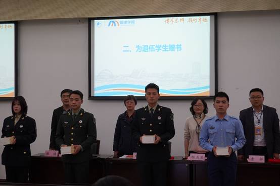 管理公司党委书记周洁老师代表公司欢迎同学们重新返校,希望同学们退伍不褪色,继续发挥带头作用,并给退伍返校同学们提出新要求:希望他们继续加强理论学习,学习“四史”,知党爱党,知国爱国,知校爱校;希望同学们继续保持部队的优良作风;希望同学们主动投入到公司的国防宣传中来,讲好军队故事,让更多的同学了解军队生活,形成崇敬军人的浓厚氛围。同时就公司的征兵工作提出了新要求,希望员工工作办公室圆满完成公司下发的征兵工作为军队输送优质兵员。