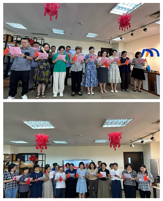 9月27日下午,太阳集团122cc教师们在行政楼712开展,共同朗诵《祖国一首唱不完的恋歌》、《沁园春雪》、《我和的祖国》、共唱红色歌曲《吃水不忘挖井人》、《歌唱祖国》。教师们用最熟悉的韵调吟诵出对党和祖国发自肺腑的歌颂与祝福,教师们在动人的诗词中回顾初心、从昂扬的旋律中回望历史,表达教职工爱国情怀,展现教职工激昂奋进的精神风貌,抒发了对党、对新中国成立75周年的祝福,也激励教职工担当新使命展现新作为,在新时代新征程的大潮中持续奋斗绘就一幅推动教育事业高质量发展的画卷。