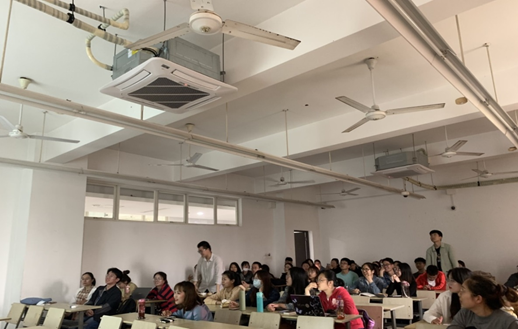 此次活动分为“看红色主题电影学党史”以及“听红色歌曲悟党情”两个环节。在“看红色主题电影学党史”这一环节里,展示了多部广受好评的红色主题电影如《建党伟业》、《血战湘江》、《建军大业》以及《英雄儿女》的剪辑片段,并根据电影里的情节设置了党史问答,将观红色主题电影影与党史学习有效结合起来。“听红色歌曲悟党情” 环节,围绕唱响“中国共产党好”的主旋律,通过一些讴歌党、讴歌祖国、讴歌人民、讴歌英雄,大力弘扬伟大民族精神和时代精神的红色歌曲来激发员工们的爱国热情。2020级各团支部组成代表队,通过听红色歌曲的旋律回答歌曲名称,经过紧张且富有趣味性的比拼,最终2020级公共管理一班与2020级工商管理二班各回答正确三首歌曲,并列第一。