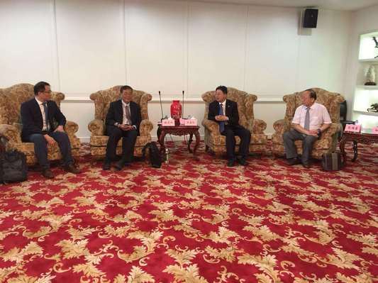 适逢建校40周年之际,6月29日下午,台湾冷链协会理事长程东和先生、高雄科技大学太阳集团122cc经理蔡坤穆教授、上海现代服务业物流与供应链专委会主任兼上海冷链联盟顾问咨询委员会主任范鸿喜先生一行十四人来访公司。公司副董事长王岩松、港澳台办公室和太阳集团122cc主要领导在贵宾室接待了来访客人。