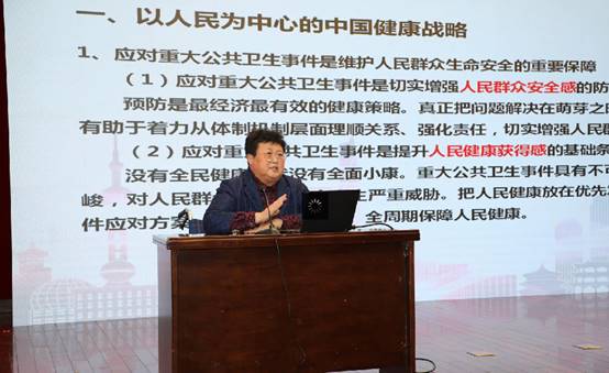 会上,汪泓教授作《健康中国:应对重大公共卫生事件的中国方案》学术报告,汪泓教授对健康中国的深入研究,结合此次百年一见的新冠疫情发展动态和治理宝山的切身经验,就“应对重大公共卫生事件的中国方案”提出思考。