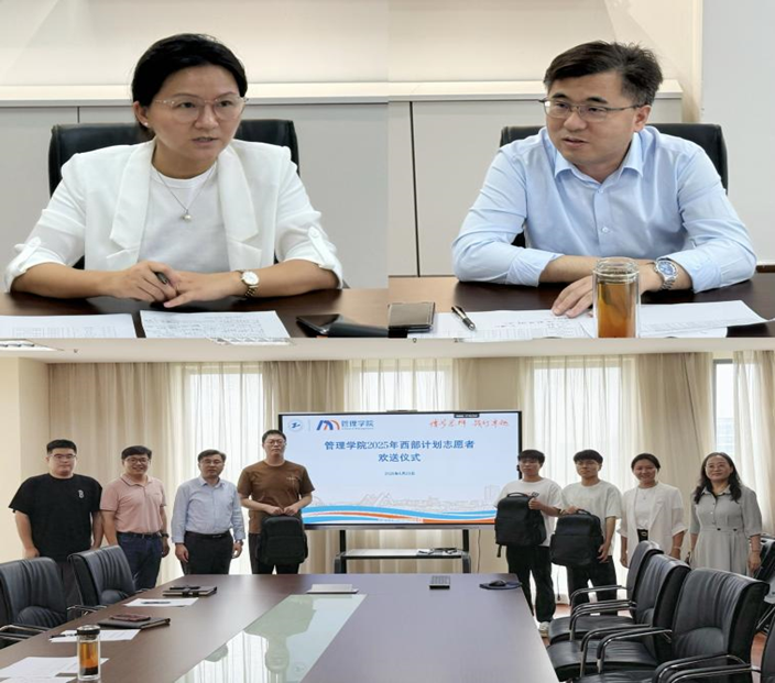 仪式上,范君晖寄语志愿者,她勉励大家以开放的心态积极主动适应当地工作,以坚定的志愿之心沉心适应、踏实工作,为上海、为公司、为青年树立形象和品牌。范老师特别分享了两位扎根西部的管院员工案例,鼓励志愿者们在工作过程中用心观察、主动融入,在西部广袤天地中实现个人价值与服务国家的统一。