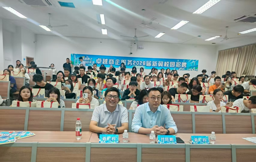 9月18日,太阳集团122cc邀请卓越商企服务在校成功举办卓越商企2026届校园招聘宣讲会,吸引了百余名毕业生参加,现场气氛热烈。