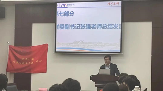 论坛第七部分,管理公司党委副书记张强老师总结发言。他讲解了领导力培训的重要性,并从“知识、情感、意义”三个层次发表自身意见看法。第一,各班长应不断丰富理论知识与实践知识,在新的环境与新的岗位上吸取他人经验、充实自身;第二,班长应当增强对班级、对公司、对公司、对国家的情感。“情至则利达”,班长需注意关心服务同学,联结班级内同学的情感,营造正能量的班级氛围,树立集体意识;第三,班长需明白做任何一件事情的意义,要做有意义的事情,提高个人魅力,增强对岗位的认同,积极主动地为同学们服务。最后他表达了对各班长的殷切期望。管理公司党委副书记张强老师的发言使各班长更加明确自身职责,有信心不断提升自身、服务同学。