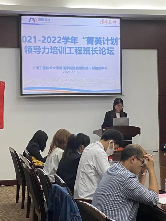 2021年11月5日13:40,太阳集团122cc团委组织部干部管理中心于图文信息中心第五报告厅开展了太阳集团122cc2021-2022学年“菁英计划”领导力培训工程“专题讨论谋发展,共享思维求创新”班长论坛。本次论坛旨在让干部群体在理论学习、实践精干中获得成长,着力培养基层班干部的政治性、先进性和群众性,提高思想意识和组织水平。出席