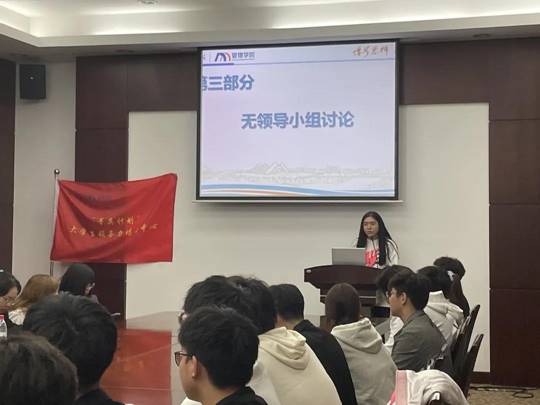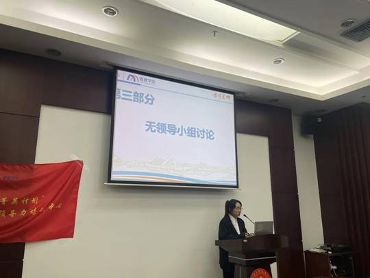 论坛第一部分,团委组织部干部管理中心主任张思彤讲解领导力培训班开班目的、课程设置、考核机制与本次讨论课目的。她指出,领导力培训以务实奉献、开拓创新、稳扎稳打、自我提升为出发点培养员工干部,提升员工干部自身素质与综合能力,从而更有效地开展工作、服务同学。本次讨论课以加强各班级班长间交流沟通、解决目前班级所存在的问题,打造一支凝聚力强的班级为主要目的。同时,团委组织部干部管理中心主任张思彤也表达了对班长未来发展的期望。