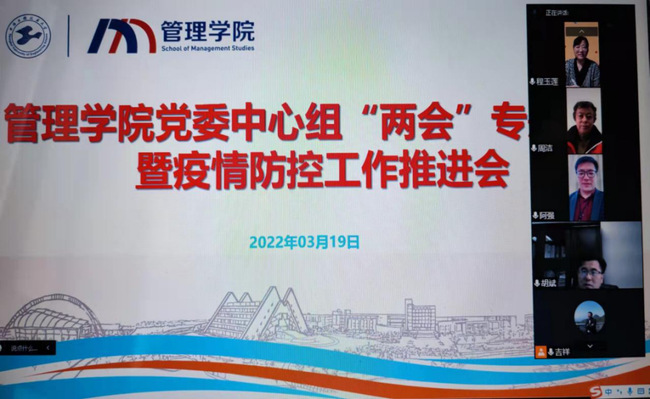 3月19日上午11:30,管理公司党委中心组在腾讯会议室开展“两会”专题学习暨疫情防控工作推进会,公司党委中心组成员参加了会议,会议由公司党委书记周洁同志主持。
