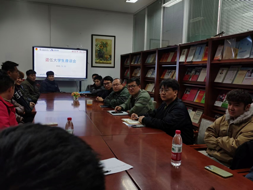座谈会最后,张强副书记结合退伍老员工的成长特点与时代要求,围绕 “知识、能力、价值”三个维度作了总结讲话。他强调,构筑扎实的知识体系是成长根基,必须尽快适应学习节奏,掌握科学方法,尤其要突破学业瓶颈,夯实专业基础。锻造过硬的能力素质是关键支撑,期望同学们将军营中淬炼的执行力、抗压力和团队协作能力,有效转化为学术钻研、社会实践与未来职业发展的核心竞争力。塑造崇高的价值追求是立身之本,勉励大家永葆军人本色,胸怀“国之大者”,自觉将个人发展融入国家发展大局,在校园生活中持续发挥先锋模范作用,成为堪当民族复兴重任的时代新人。