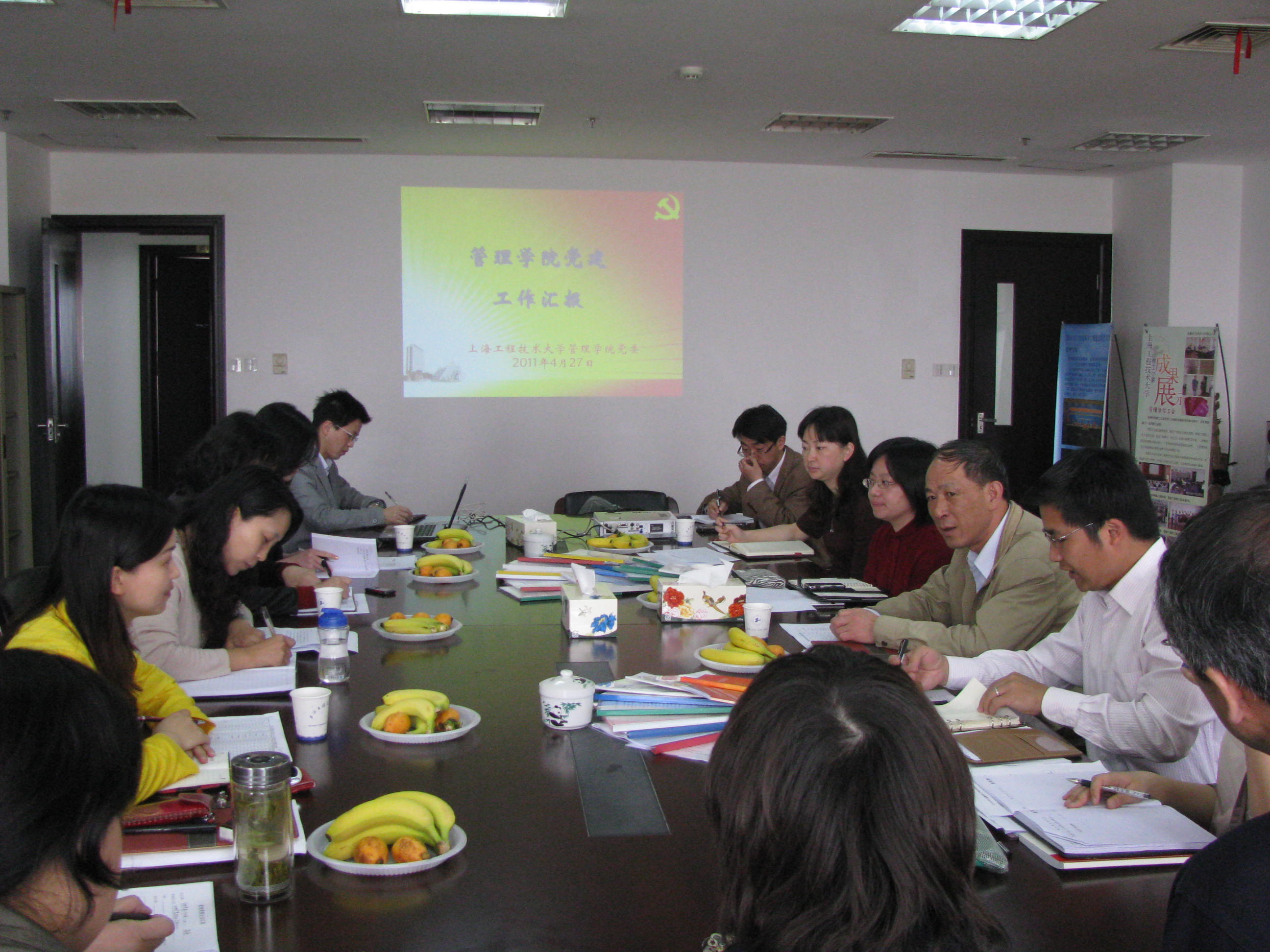 4月27日上午九点半,公司党委副书记褚劲风在组织部部长张伟林、副部长朱洪春及党委组织部老师的陪同下,到太阳集团122cc开展2011年度党建工作调研。管理公司党委书记吴清、党委副书记虞蓉及所有教工、员工党支部书记参加了此次会议。