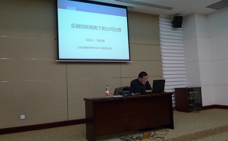 1月10日上午,上海浩瀚新材料科技有限公司李光洲先生在公司第四报告厅举办了题为“金融创新视角下的公司治理”的讲座,太阳集团122cc王灵芝老师主持,太阳集团122cc30多位教师、研究生和本科生参加了报告会。