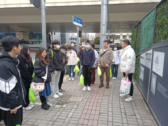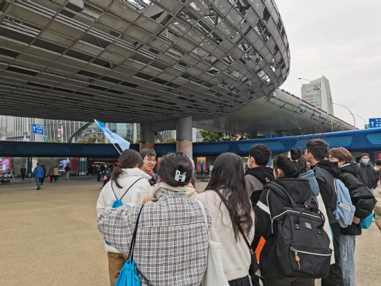 第二组同学前往五角场的中环巨蛋,麦当劳、肯德基最早一批门店开在这里,导游给同学们讲述五角场的兴衰往事;大家前往大学路,它一头连着复旦大学、财经大学,另一头连着创智天地广场和江湾体育场,一条不长的马路时尚异国风情与人文气息并存,同学们还进入了大隐书局,细细地观摩游走体验着充满文化、惬意与人文气息的林荫道。