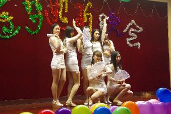 晚会在四位主持人的高亢嗓音中拉开帷幕,晚会表演内容丰富、形式多样,乐器演奏、舞蹈、小品、歌曲等娱乐节目为广大师生带来了一场丰盛的视听盛宴。李双江的歌曲《TIK TOK》节奏明快,让同学们再一次体验到血液里青春涌动的激情。工商一班的七位妙龄少女用曼妙的舞姿唯美的诠释了民族舞《咏春》,让在场的观众久久地沉浸于美的享受中,感受到中国风的巨大魅力。小品表演《面试》以幽默风趣、轻松活泼的方式给大家传递深刻的道理。一组歌曲串烧优美动听,青春时尚,展现了管院学子的青春风貌。一群活力四射的90后将风靡大街小巷的《小苹果》演绎的别具一番风味,引得在场的观众笑声和掌声不断。此外,同学们自编自导的小品《唐伯虎点秋香》可谓笑点十足,将晚会再一次推向高潮。才艺表演《古筝书法》和话剧表演《研究生初体验》,用不同的形式向我们展示了当代研究生奋发向上的新形象,引得在场观众经久不息的赞叹和掌声。