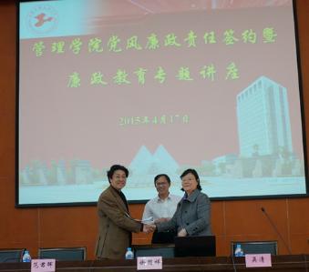 会上,吴清老师向各位老师传达2015年公司党风廉政干部大会上的讲话精神,及公司2015年党风廉政工作计划,要求大家进一步增强反腐倡廉的高度责任感,认真做好“一岗双责”,尽心尽责做好自己的本职工作。公司副经理(副书记)、系(室)主任和党支部书记等分别签署了党风廉政建设责任书。