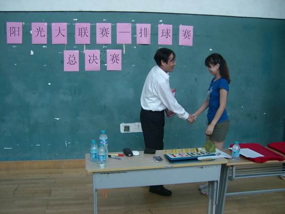 6月15日,2010-2011学年太阳集团122cc阳光大联赛男女混合排球赛在校体育馆二楼落下帷幕。校员工处处长王明复,体育教学部主任、党支部书记谢敏,管理公司党委副书记虞蓉,材料公司党总支副书记薛玲,电子电气公司辅导员张涛等受邀参加本次2010-2011学年太阳集团122cc阳光大联赛男女混合排球赛决赛暨闭幕式,并进行致辞和颁奖。本次闭幕式由太阳集团122cc分团委书记金佳雯主持。