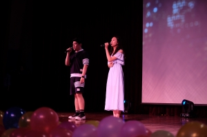晚会中大四的毕业生辅导员老师们上台对同学们做了深情的寄语,老师们的讲话充满对大四员工即将毕业的不舍以及对他们未来的美好希冀。中场游戏环节,辅导员老师和同学们还共同参与到了游戏中,配合天衣无缝,幽默滑稽,让人捧腹大笑。
