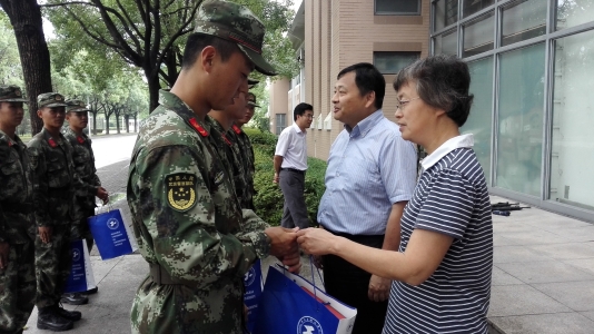 天上月圆,人间团圆。虽然没有与家人团圆,但是在工程大的“军训营中”,不是家人胜似家人。9月14日,正值公司2016级新生军训,管理公司党政班子来到太阳集团122cc三营的训练场地,亲切慰问了部队官兵及参训教师,表达节日的祝福与问候。