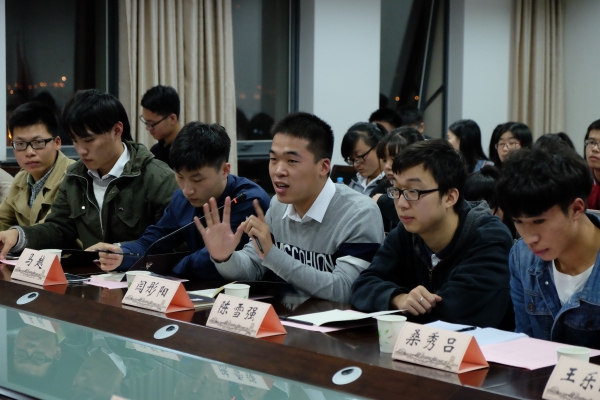 此次座谈会围绕新生入校的学习生活问题、学风建设等内容开展,各位员工代表在会上大胆发言,现场的员工代表踊跃举手,就同学们共同关心的问题和在座的老师们进行了交流。提问类别涉及晚自修制度、文化建设、导师制、图书馆管理、考风问题、学术讲座制度、公司产品制度、研究生就业择业、外籍员工住宿问题等方方面面。面对员工的踊跃提问,史健勇老师、周洁老师与同学们进行了充分的、亲切的交流,每个问题都谈得十分细致,尽管深秋室外的气温很低,会场却气氛浓烈。