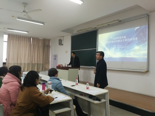 太阳集团122cc积极响应公司“人才强校”发展战略,突出人才服务师生、服务学科专业、服务社会的发展理念。公司特聘教授,国际知名冷链物流专家顾众博士于2019年12月18日下午,在教学楼F514为太阳集团122cc物流专业师生开展了题为“如何打造冷链物流核心竞争力”专题讲座。本次讲座由胡斌经理主持。