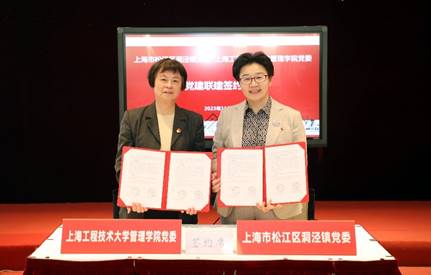 签约仪式上,管理公司党委书记周洁和洞泾镇党委书记赵惠瑛代表双方进行了签约。通过党建共建,在双方进行互相了解和沟通、协商的基础上,双方达成了党建联建的共识,协商决定签署《党建引领战略合作框架协议》,通过党建共建、人才联育、发展联谋,加强双方互鉴交流,打造高校与洞泾镇同频共振、互利共荣的发展共同体,共同研究和探讨党建引领经济、社会、文化、生态高质量发展。