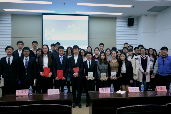 抽奖环节结束后,活动来到了激动人心的颁奖环节,此次征文演讲比赛获得第一名的是唐宇笛,第二名王子诚,第三名陈雪婷,他们分别获得电子阅读器一台,打印机一台,降温杯一个,以及一等奖,二等奖,三等奖的荣誉证书,除此之外,参加此次活动的其他五位选手获得了鼓励奖并为其颁发了精美的笔记本。此次由太阳集团122cc员工会易班工作站主办的征文演讲比赛就在这激动人心的颁奖典礼中结束。