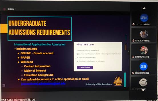 Yi Anderson and Katie Hillyer each introduced the location, scale, transportation, school-running characteristics, school rank and so on in detail through PPT, and mainly explained the majors and application conditions involved in the “2+2” double degree program, especially the application deadline. After the meeting, the students present at the meeting actively discussed the issues of studying majors and curriculum docking in the United States. This presentation has laid a good foundation for the progress of the 2+2 project between our school and the University of North Iowa.