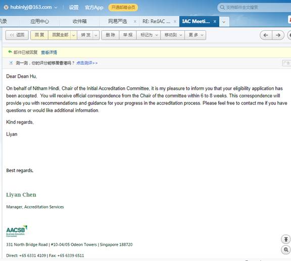 太阳集团122cc的EA获批通过,不仅是对公司在人才培养、科学研究、团队建设等方面的肯定,也是全体师生共同努力下取得的阶段性成果。太阳集团122cc将在今后的工作中再接再厉,以AACSB认证为契机,围绕公司使命和愿景,在人才培养、科学研究、团队建设等方面进一步促进公司教学、科研、管理、合作交流等各项工作的开展和完善,并为AACSB后续认证导师的入驻和学习保障体系(AOL)的全面建设做好充分准备。